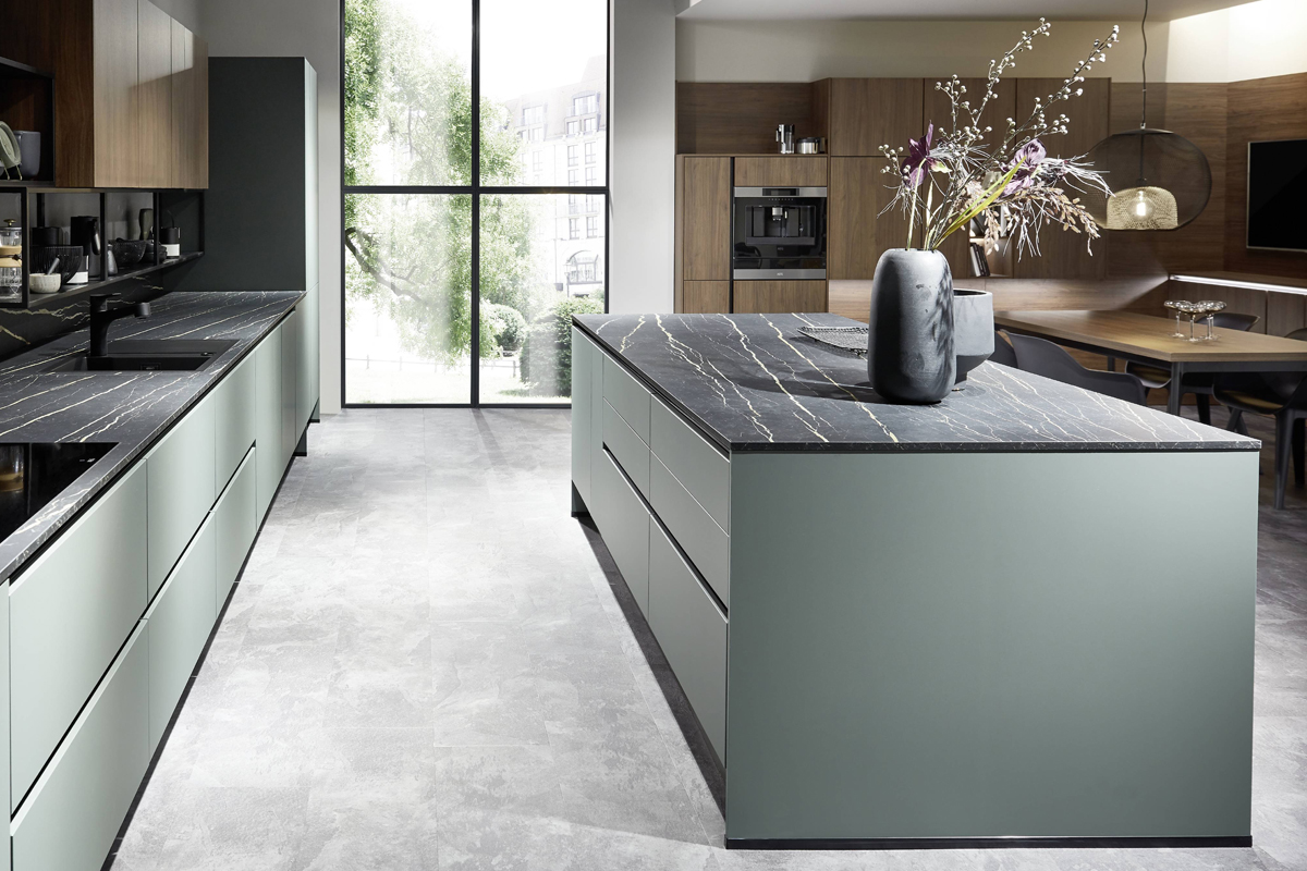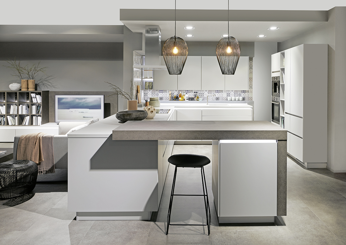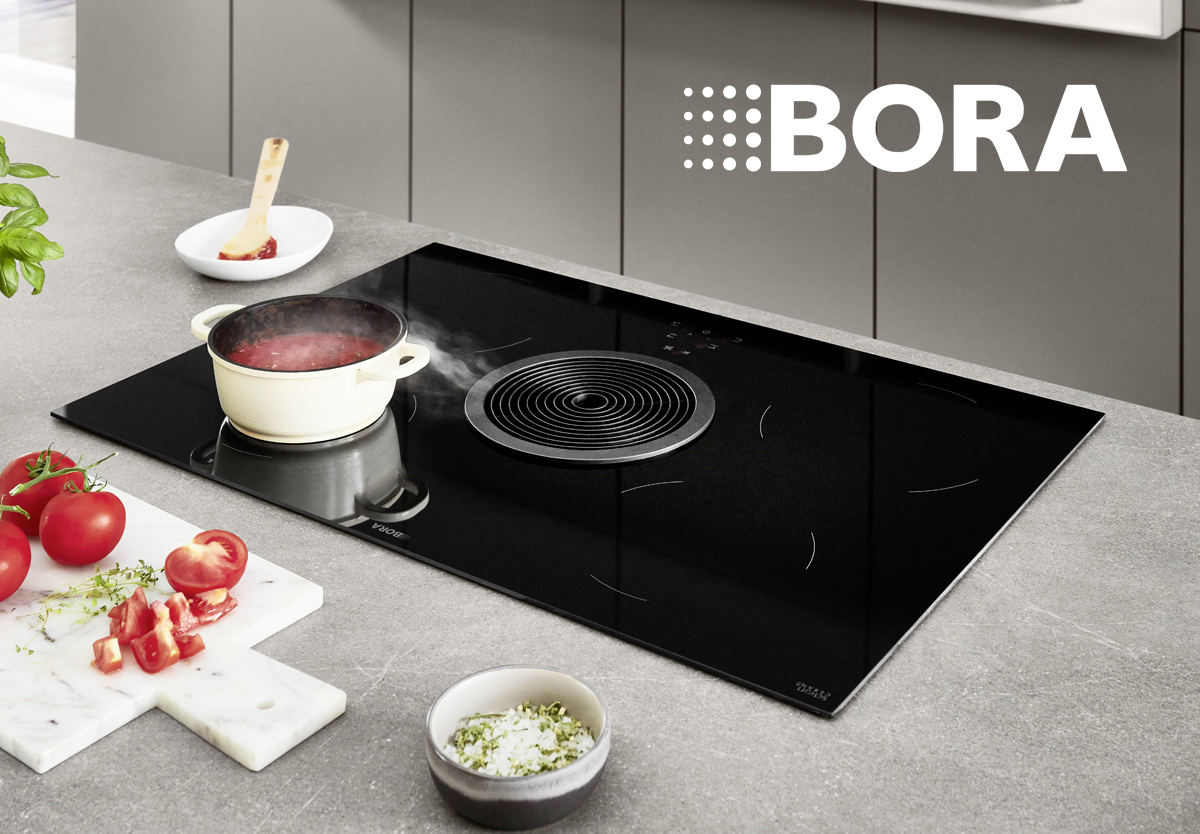 Inklusive Einbaubackofen Laurus LEB10BK Energieeffizienzklasse A, Glaskeramik Kochfeld mit Induktion und Kochfeldabzug (Umluft) Bora GP4U, Kühlschrank Progress PK1816 Energieeffizienzklasse E, Einbauspüle Edelstahl Rodi NewManaus, XL-Schränken, Wandschränken mit Klappe, Hochschrankregal, Esstheke.