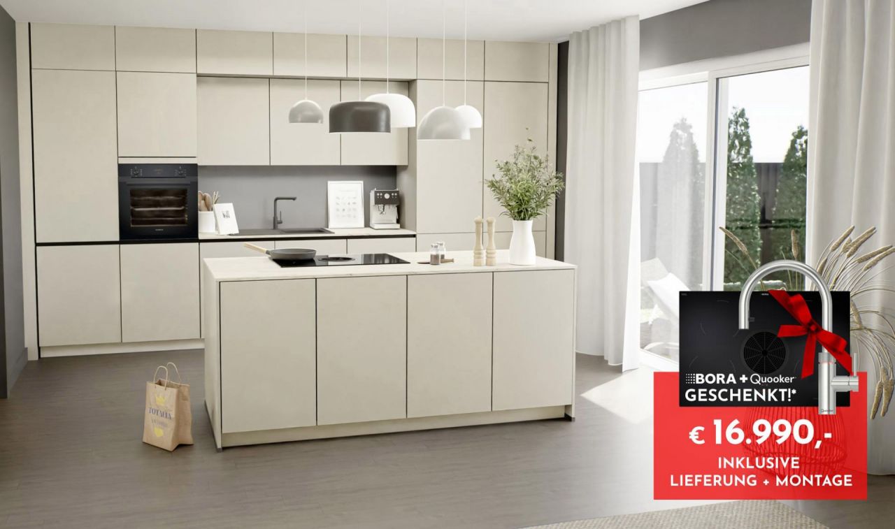 Energieeffizienzklassen und Spektren: Backöfen, Herde und Dunstabzuge A+++ - D. Geschirrspuler und Kuhl-/Gefrierschränke A - G und Leuchtmittel A++ - E. *Gratis BORA GP4U Induktionskochfeld mit integriertem Dunstabzug & Gratis Quooker Wasserhahn Flex Pro3 nur gültig beim Kauf der hier ausgezeichneten Nobilia Laser LineN Küche zum Auftragswert von 16.990,- Euro. Nicht kombinierbar mit anderen Aktionen, keine Barauszahlung möglich.